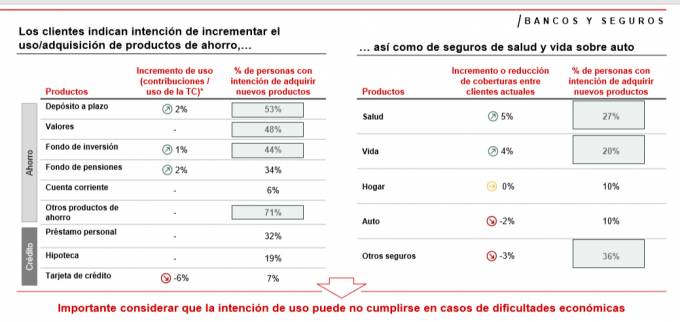 El Covid-19 ha disparado la intención de los clientes de utilizar más productos de Ahorro y seguros de Salud y Vida, según una encuesta realizada por la consultora Bain & Company. En concreto, hasta un 27% de los encuestados sin seguro de Salud indica intención de contratarlo en el corto plazo, y un 20% en el caso de seguros de Vida.
