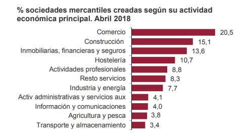 La creación de empresas inmobiliarias, financieras y de seguros crece 1,7 puntos en abril