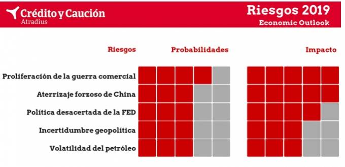 La extensión del conflicto arancelario a la Unión Europea, el aterrizaje forzoso del crecimiento chino, una política monetaria errónea, la incertidumbre geopolítica derivada de fenómenos como el Brexit o la agenda de la administración italiana y la volatilidad del petróleo con los 5 riesgos que amenazan el crecimiento global, según el último Economic Outlook difundido por Crédito y Caución.