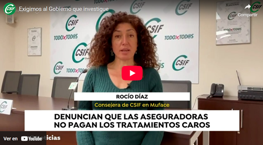 CSIF reclama la convocatoria del consejo general de Muface para analizar la situación de la mutualidad por el nuevo concierto sanitario. Primero, el sindicato considera que "el modelo sale tocado" tras la salida de DKV aunque sigan Adeslas y Asisa y expone que "hay cuestiones que nos preocupan como las quejas recibidas por la reducción de los cuadros médicos o las denuncias conocidas sobre supuestas presiones a oncólogos para ahorrar en tratamientos en las compañías privadas. Exigimos que se investiguen estas denuncias y llegado el caso se tomen las decisiones pertinentes para que no se vea afectada la asistencia sanitaria".