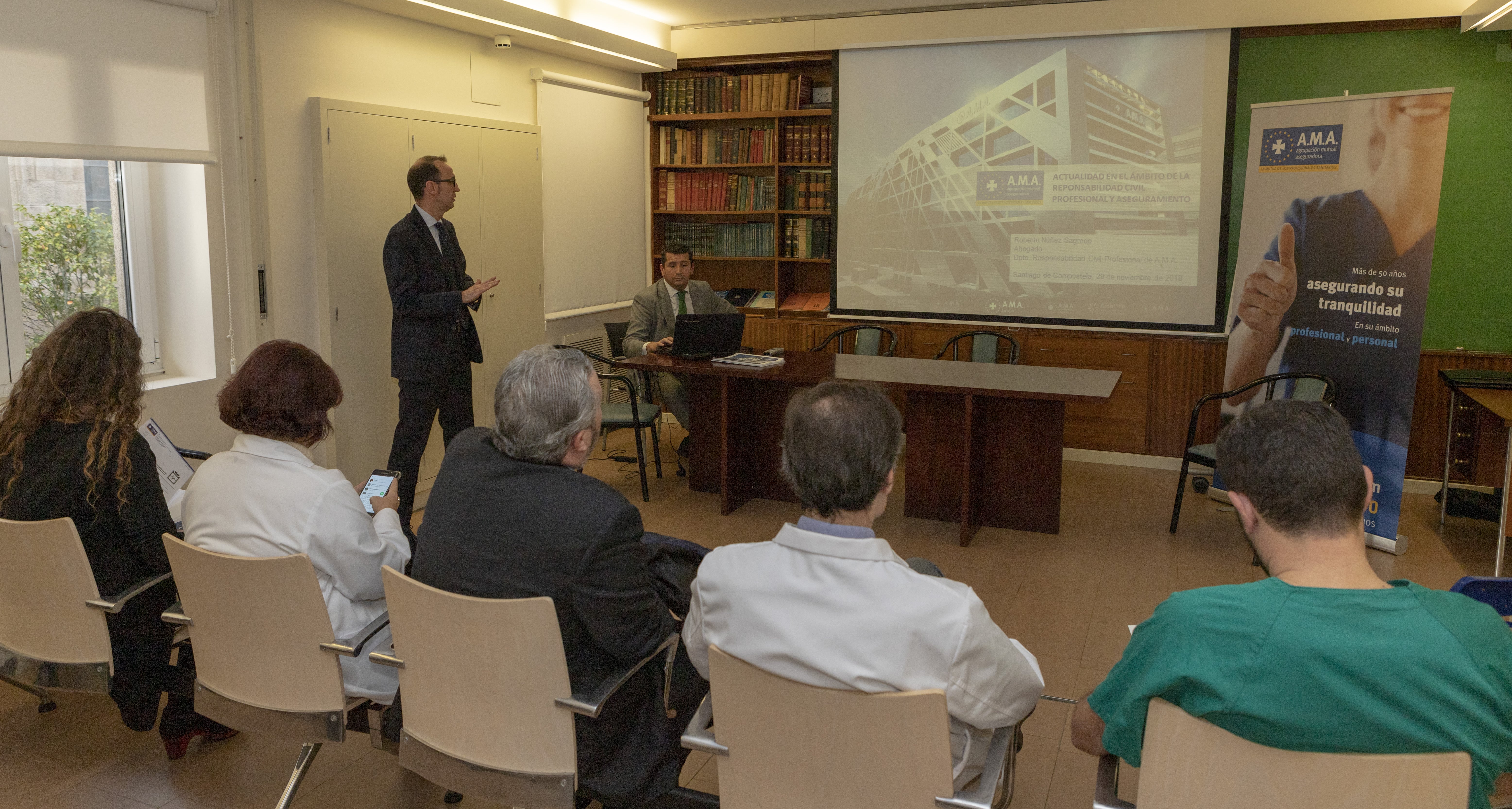 A.M.A. impartió el 29 de noviembre dos conferencias, en los hospitales HM La Rosaleda de Santiago de Compostela y HM Modelo de La Coruña, para acercar la actualidad de la RC Profesional a los sanitarios gallegos. Roberto Núñez, letrado del Departamento de Siniestros de RC Profesional de A.M.A. y especialista en Derecho Sanitario, abordó las últimas novedades en materia de RC Profesional, tanto normativas como jurisprudenciales, que afectan a la práctica sanitaria. Explicó que en los últimos años la cuantía media de las reclamaciones de RCP ha aumentado un 67%.