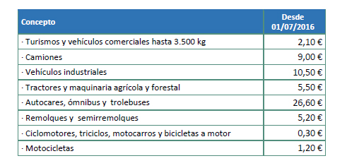 El importe de este recargo a favor del CCS será diferente en función del tipo de vehículo y se aplicará con las siguientes tarifas: