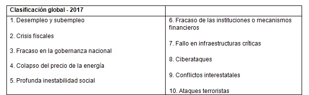 En la mayoría de regiones, los ejecutivos destacaron el desempleo y subempleo y las crisis fiscales como los dos mayores riesgos, aunque a los ejecutivos de América del Norte, Asia Oriental y Pacífico les preocupaban más los ataques cibernéticos y las burbujas económicas.