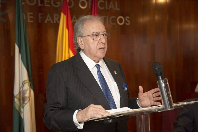 Frente a los problemas económicos que padece el colectivo de farmacéuticos, el presidente de Honor de A.M.A. aseguró que "pronto conseguiréis superar esta situación de crisis, logrando equilibrar los intereses de todos los farmacéuticos a la vez que les sabréis dar un servicio de calidad al ciudadano" porque, continuó, "los boticarios sois el primer eslabón de la cadena del sistema sanitario".