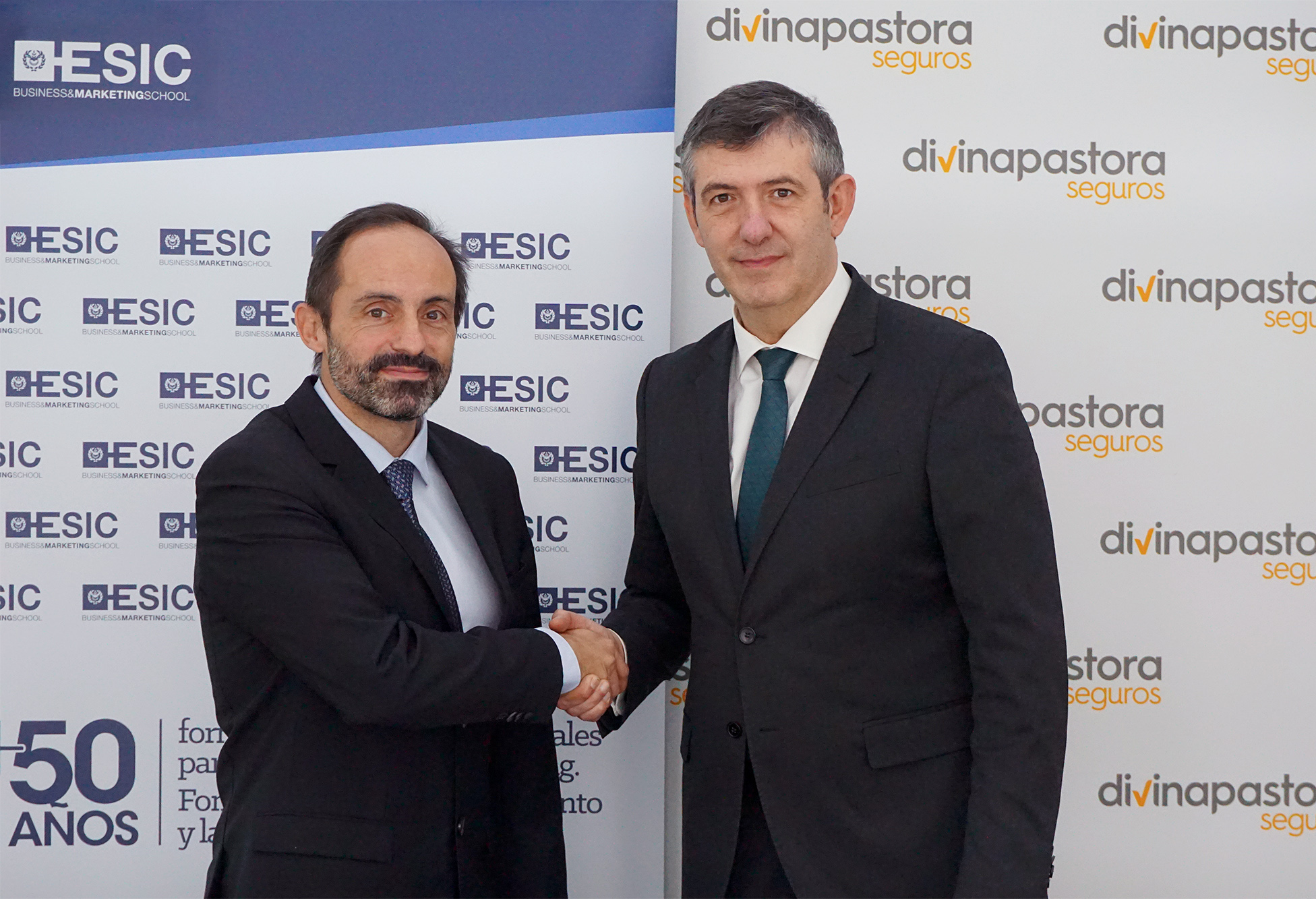 El presidente de Divina Pastora, Armando Nieto, y el director de ESIC Business and Marketing School en Valencia, Agustín Carrilero, han firmado un convenio de colaboración a través del cual la aseguradora patrocina el Club de Debate Escolar 'El poder de las palabras' para el curso 2018-2019. Es la tercera ocasión que Divina Pastora presta apoyo a esta iniciativa enfocada a completar la formación y el desarrollo profesional de los jóvenes.