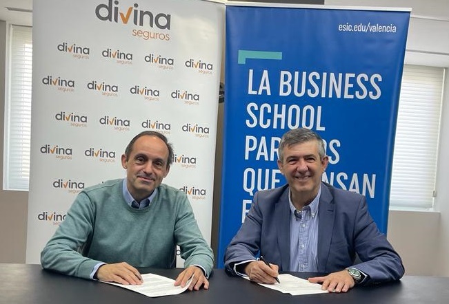 Divina Seguros y ESIC Comunidad Valenciana han firmado un convenio de colaboración para fomentar la formación posuniversitaria entre los jóvenes valencianos. Así, gracias a este convenio, la aseguradora becará a 3 estudiantes para realizar el Máster en Dirección de Marketing Deportivo que se imparte en el campus de ESIC en Valencia.