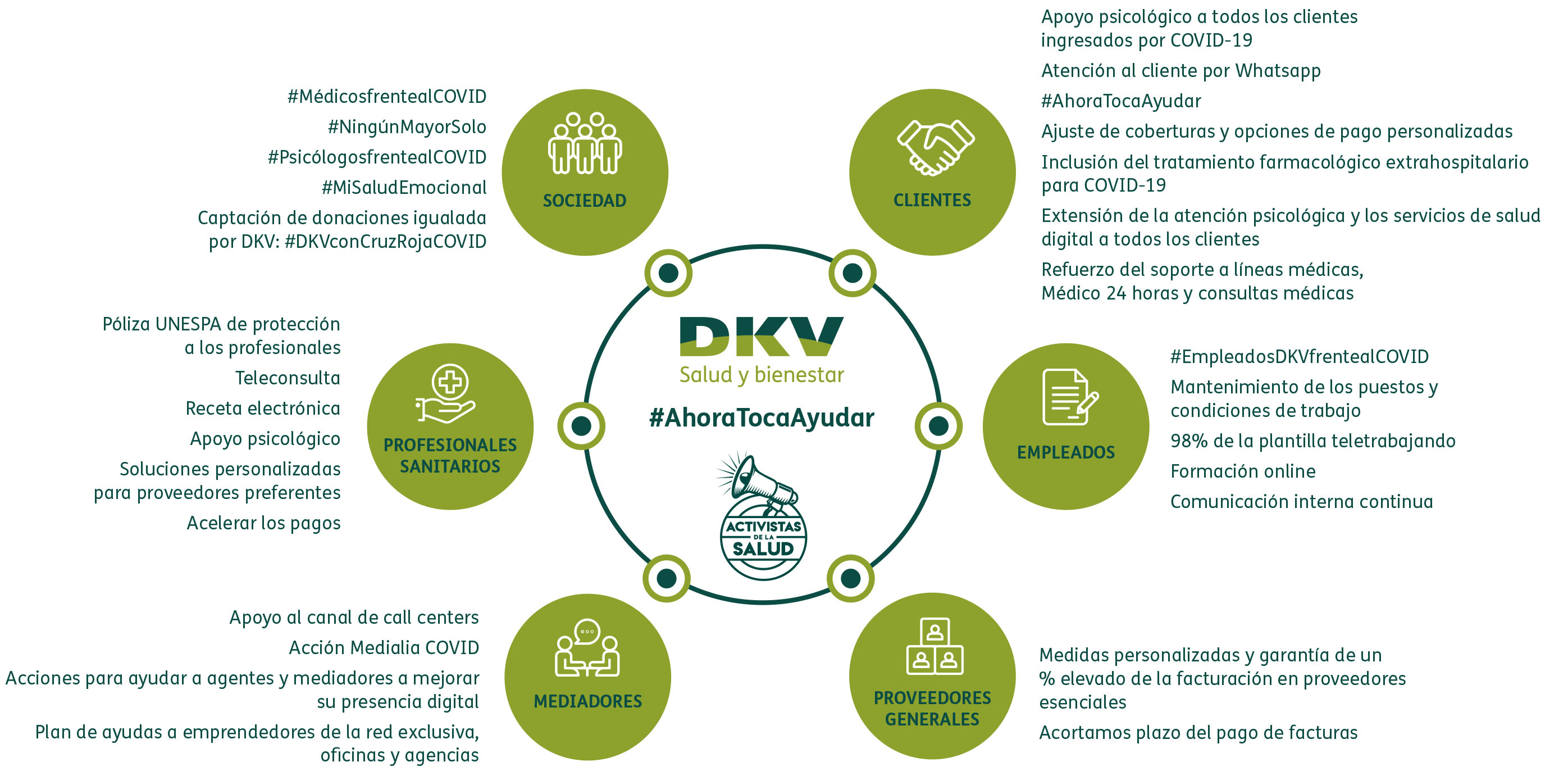 Entre las principales medidas para clientes destacan la inclusión de la cobertura de tratamiento farmacológico extrahospitalario ante la infección por COVID-19 y la adopción de soluciones a medida en coberturas y opciones de pago en caso de dificultades ante el pago de la prima.