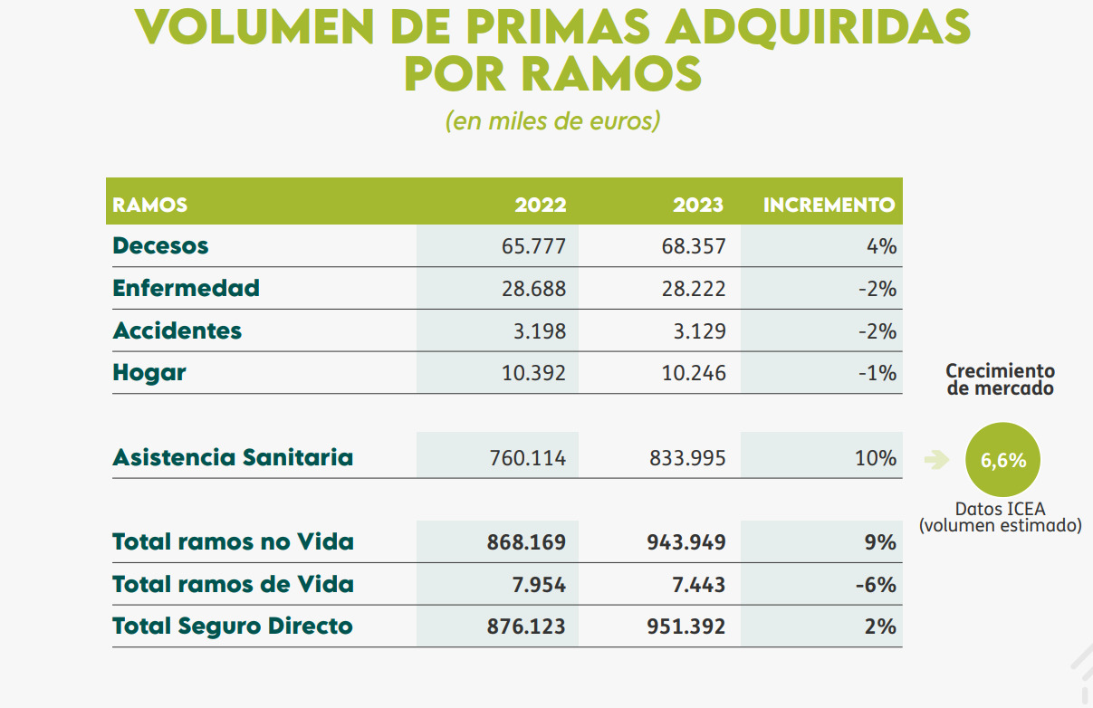 El número de clientes cerró el mes de diciembre pasado con un total de 1,9 millones con un ligero crecimiento del 0,4% respecto a 2022. La plantilla de la aseguradora se incrementó un 2% hasta los 940 millones.