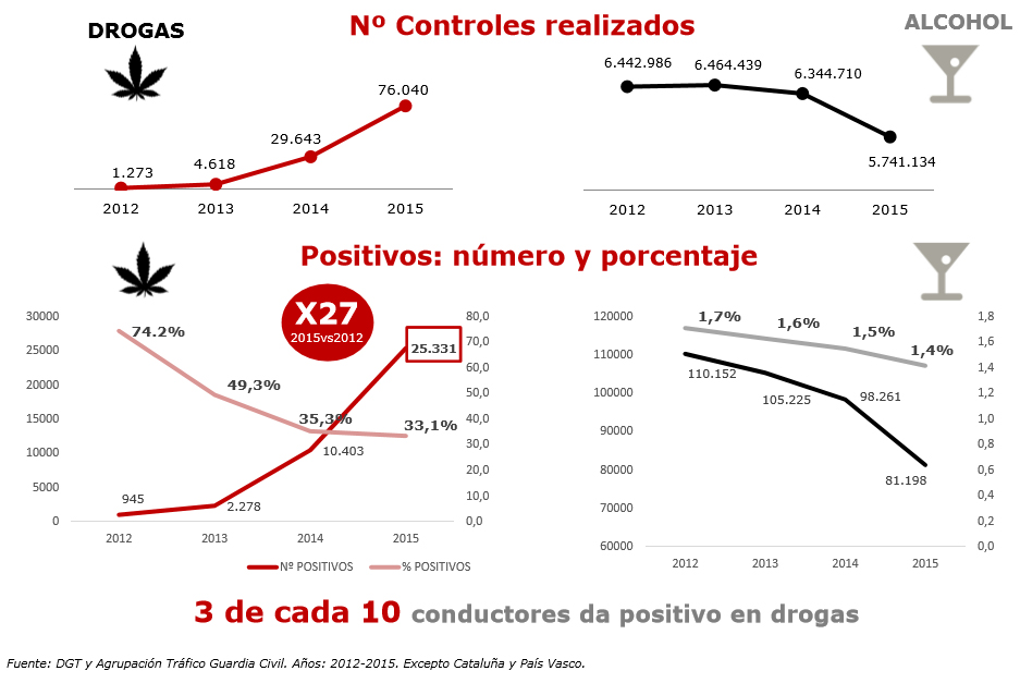 Las drogas ‘ganan’ al alcohol al volante