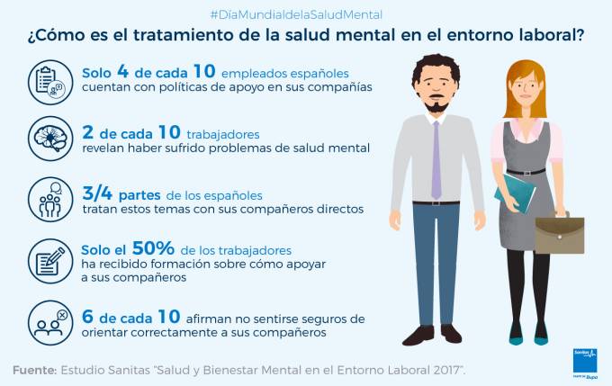 Solo 4 de cada 10 trabajadores españoles afirma que en sus compañías existen políticas de apoyo a su salud mental. Así se desprende del estudio Sanitas Salud y Bienestar Mental en el Entorno Laboral elaborado en España, Australia y Hong Kong. Con esta encuesta, elaborada entre más de 1.500 empleados, se muestra cómo España queda a la cola en temas relacionados con la salud mental en el trabajo.