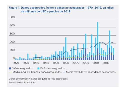 Swiss Re en su último informe ha puesto de manifiesto que el sector asegurador no cuenta con los mejores medios para defenderse ante las catástrofes naturales, tanto las presentes como las futuras. Aun así, y prácticamente por la benevolencia de la naturaleza, los daños económicos se redujeron en 2019.