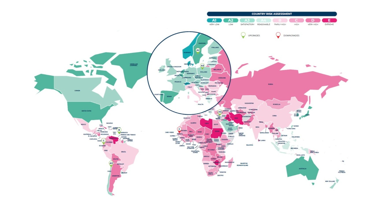 En el ámbito europeo, España se posiciona por delante de economías como Alemania, Italia y Francia, todas ellas con una calificación inferior (A3). Además, se sitúa al mismo nivel que Reino Unido y Suecia, y solo por debajo de Suiza, considerada de riesgo muy bajo (A1).
