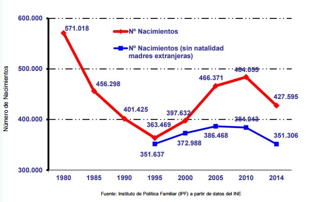El informe ‘Evolución de la familia en España 2016’, realizado por el Instituto de Política Familiar y presentado ayer, asegura que en España se necesitarían 260.000 nacimientos anuales (720 al día) para asegurar el reemplazo generacional. El texto destaca que hay un déficit de la natalidad con menos niños, con nacimientos más tarde y afirma que los hogares se están quedando vacíos. Según el informe nacen al año 143.423 niños menos que en 1980.