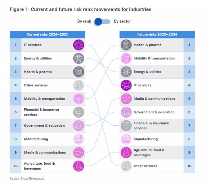 Christoph Nabholz, director de Investigación y Sostenibilidad de Swiss Re, ha comentado que si bien las TIC "son actualmente el área más afectada por los riesgos de IA, tratándose del sector pionero en este ámbito, esto cambiará a medida que la utilización de la tecnología se extienda a todos los sectores, como es el caso de la salud o la movilidad". Por esta razón, las compañías de seguros "están comenzando a introducir coberturas específicas para fallos de rendimiento de IA, uno de los mayores riesgos para todas las industrias".