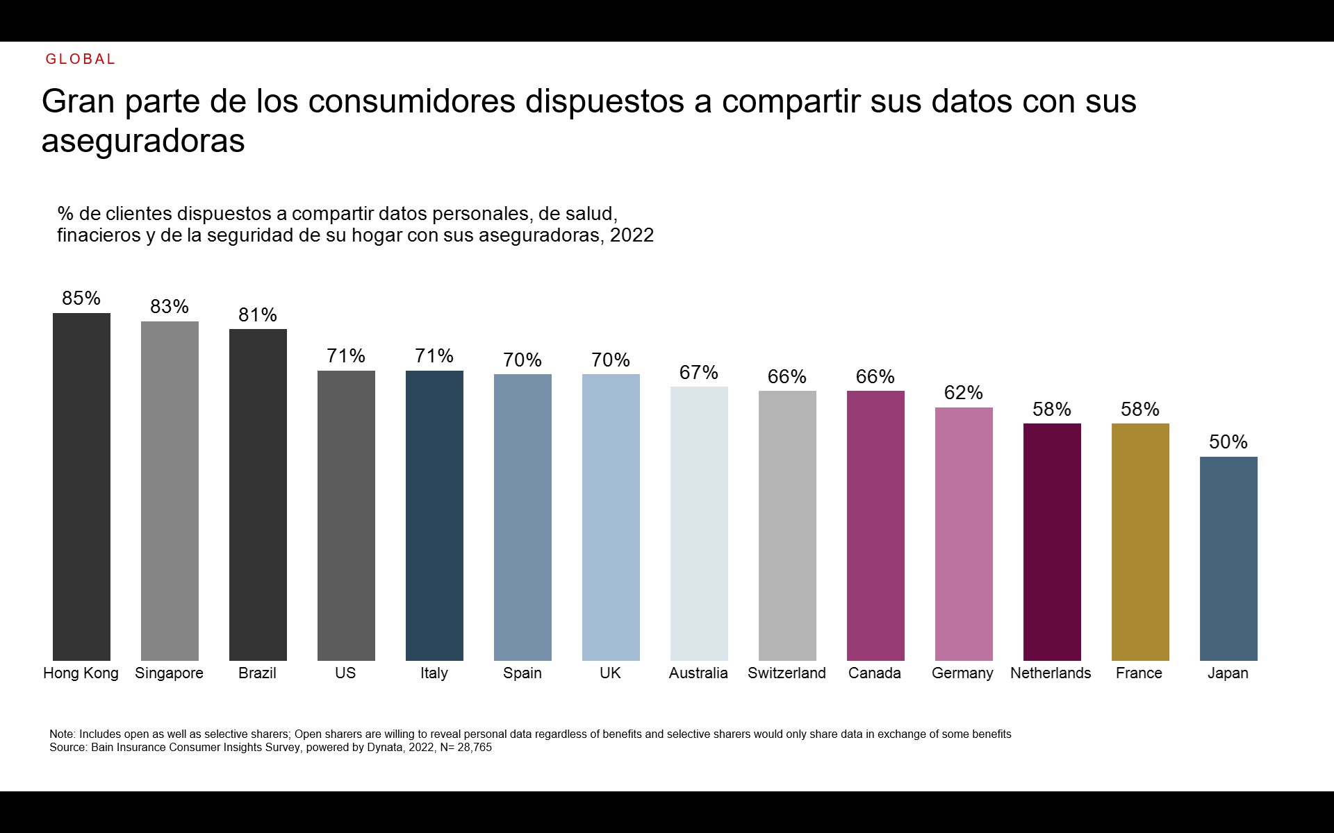 Los clientes están tan interesados en recibir estos servicios de prevención que estarían dispuestos a facilitar información personal a las compañías. De hecho, en el informe se constata que el 70% de los consumidores españoles están dispuestos a compartir sus datos personales, financieros o de seguridad del hogar con sus aseguradoras, en línea con el resto de los países analizados (Italia, Reino Unido, Australia, Canadá o Alemania). No obstante, en estos momentos, solo un 13% está compartiendo estos datos con sus aseguradoras a través del móvil.