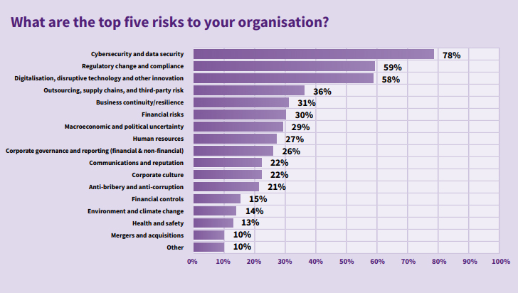 Los datos reflejan que para el 78% de los encuestados el riesgo principal será la ciberseguridad; le siguen los cambios regulatorios (59%) y la digitalización (58%). Por detrás de éstos aparecen cuestiones como la externalización, la continuidad de negocio, los...