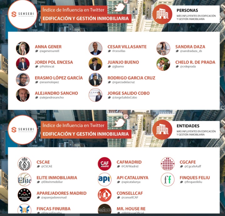 Sensedi, compañía del Grupo Mutua de Propietarios, ha elaborado un listado de perfiles imprescindibles para seguir la actualidad en Edificación y Gestión Inmobiliaria en Twitter.