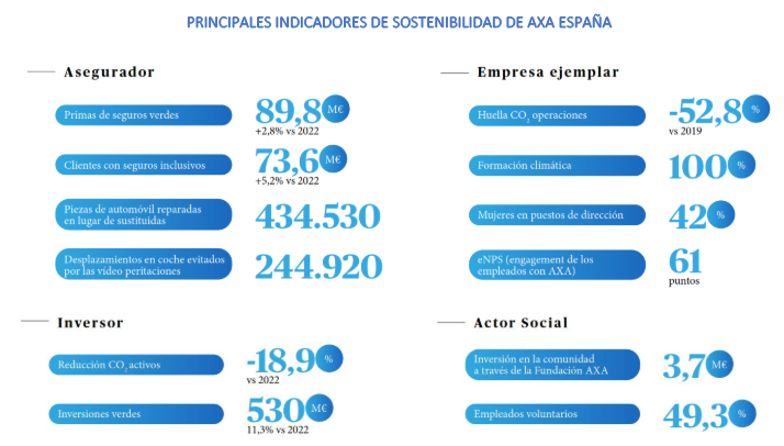 Estos son los principales indicadores de sostenibilidad de AXA España en 2023