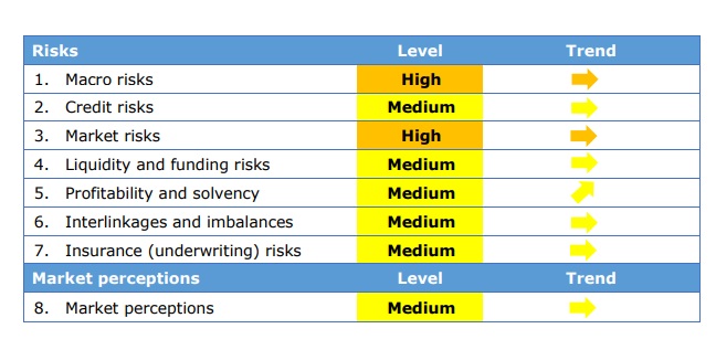 Los bajos tipos de interés siguen siendo un riego clave para el sector. Los riesgos crediticios continúan a nivel medio. Sin embargo, los riesgos de rentabilidad y solvencia aumentaron debido a la menor rentabilidad de las inversiones para las aseguradoras de Vida observadas en los datos del cierre de 2018.