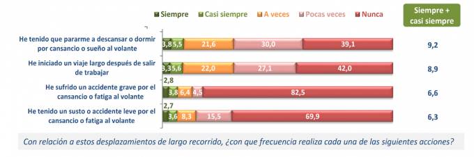 En general, los conductores europeos que declaran haber sufrido más accidentes, así como los que se quedan dormidos, tienen en común que no paran a descansar o lo hacen a partir de las 4 horas de conducción continuada, lo que establece una relación directa. Un estudio realizado por el RACE establece que a partir de las dos horas de conducción continuada el riesgo de sufrir un siniestro vial aumenta un 12%.