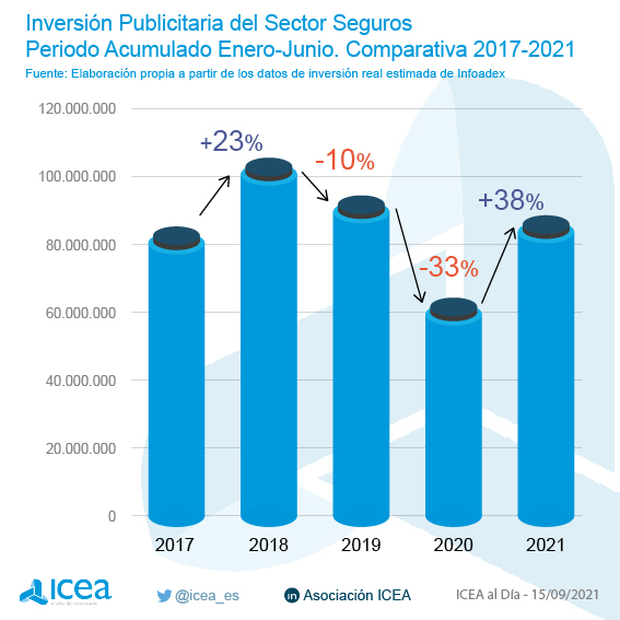 Después del parón en inversión publicitaria que el sector asegurador experimento durante la pandemia, el cierre del primer trimestre ha vuelto a traer crecimiento. Hasta junio esta inversión aumentó un 38% interanual hasta alcanzar los 89,8 millones de euros.