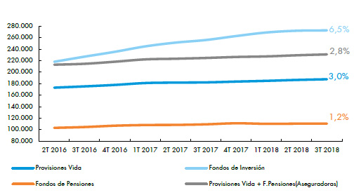 La comparativa de los diferentes instrumentos de ahorro no deja lugar a dudas: los fondos de inversión baten ampliamente al resto en cuanto a crecimiento del patrimonio. Según los datos de ICEA, al cierre del tercer trimestre los fondos de inversión con 272.703 millones de euros, con un crecimiento patrimonial del 6,5%. El ahorro gestionado a través de provisiones de Vida era de 187.671 millones de euros, el 3% más. Mientras, los Fondos de Pensiones concluyeron en 110.498 millones de euros (+1,2%).