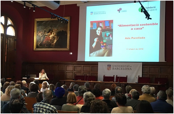 La Fundación Agrupació junto a la Universitat de Barcelona han organizado una conferencia sobre alimentación sostenible que ha reunido a 150 personas. La ponencia corrió a cargo de la chef y divulgadora gastronómica Ada Parellada y estuvo orientada a fomentar buenos hábitos de alimentación diaria y a aprovechar la comida, elaborando menús rápidos, planificados con antelación y que aprovechan el producto de temporada.