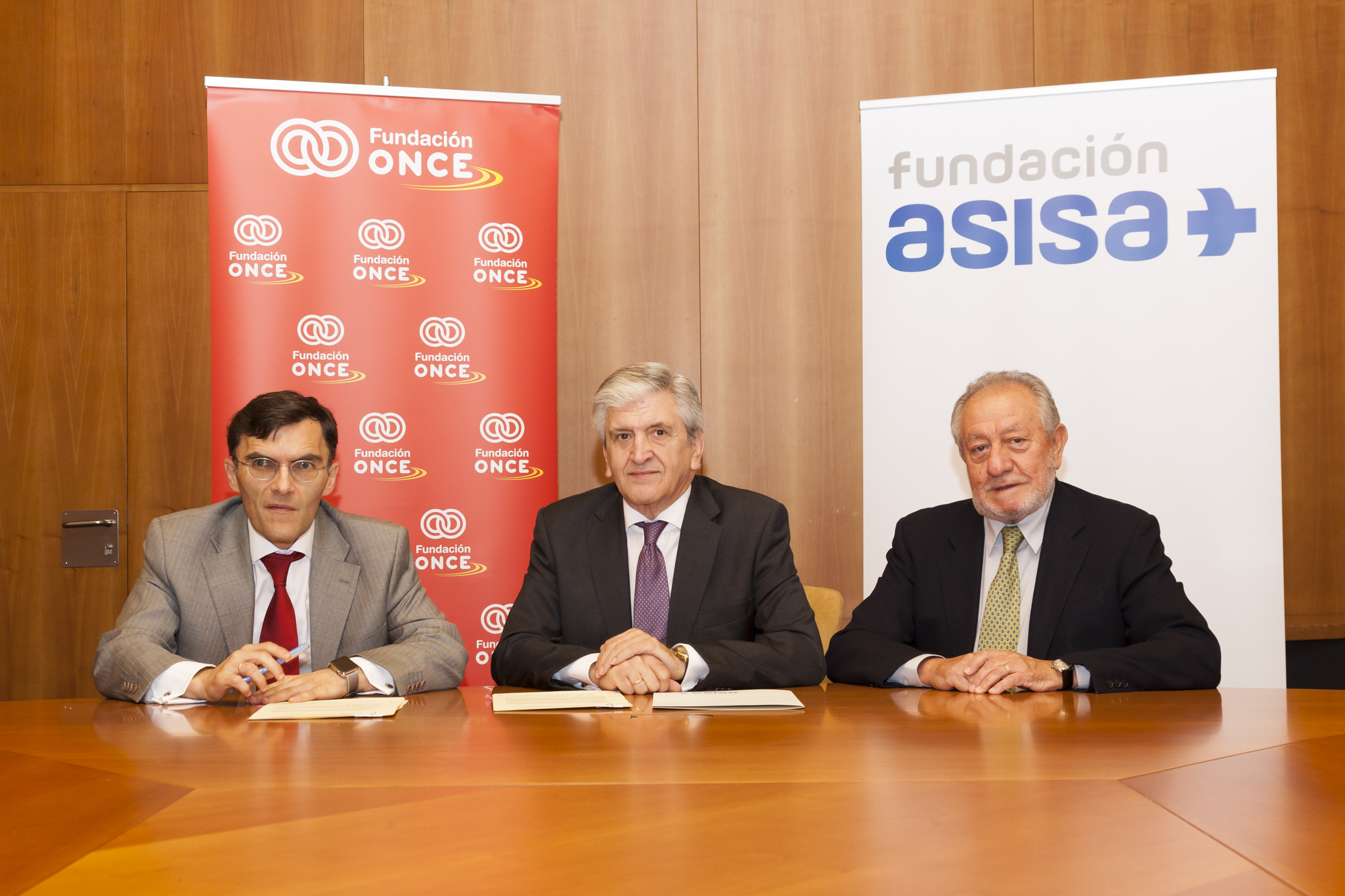 El acuerdo lo han suscrito Enrique de Porres, consejero delegado de Asisa; Mariano Caballero, director de Asesoría Jurídica de la aseguradora; y Alberto Durán, vicepresidente ejecutivo de Fundación Once.