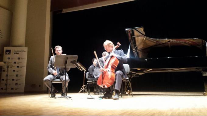 La Fundación AXA ha reunido a más de 400 personas en su tradicional concierto anual, celebrado en el Palau de la Música de Valencia. La mayoría de asistentes eran mediadores y clientes de la aseguradora. El concierto lo interpretaron Fernando Pascual (violín), Rafał Jezierski (violoncelo) y Claudio Carbó (piano), con piezas de Ravel, Schoenfield y Piazzolla.