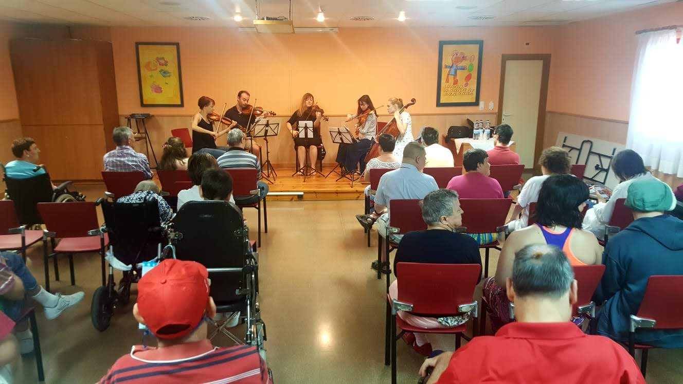Un año más, Fundación Divina Pastora apoya el VII Festival Internacional de Música de Cámara que se celebra en Zaragoza. El programa del festival tiene una doble finalidad: proporcionar un programa de educación de jóvenes músicos y compartir la música clásica en lugares y para personas que no acceden habitualmente a ella. Además, la Fundación patrocina un concierto en el Centro Residencial C.A.M.P., que presta atención integral a personas con disminución psíquica asociada con otros tipos de deficiencias o discapacidades físicas o sensoriales que precisan cuidados permanentes.
