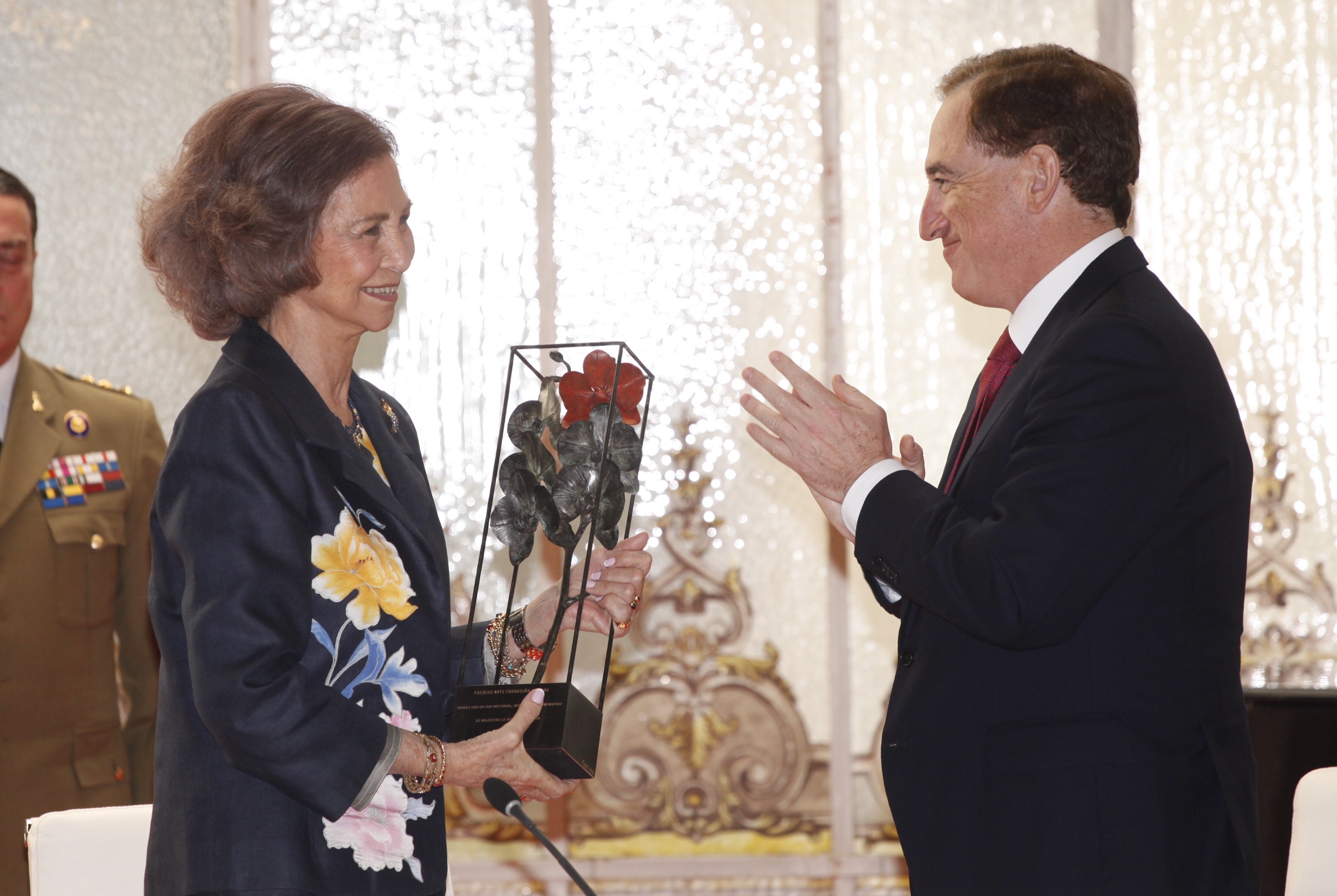 Sus “relevantes méritos personales y la ejemplaridad de su actuación al servicio del pueblo español” han acreditado a Su Majestad la Reina Doña Sofía como merecedora del ‘Premio a Toda una Vida Profesional (José Manuel Martínez)’ de la Fundación Mapfre. Ayer se entregaron los Premios 2015 de la Fundación para reconocer “públicamente el esfuerzo, el compromiso y la dedicación que empresas o instituciones realizan, muchas veces de forma silenciosa, en beneficio de la comunidad”, destacó el presidente de la Fundación Mapfre, Antonio Huertas. Subrayó que “la lista de méritos de S.M. la Reina Sofía es prácticamente interminable” y que “el conjunto de la sociedad es quien agradece la labor que ha desempeñado durante más de 50 años en defensa de los menos favorecidos, y muy especialmente de la infancia”.