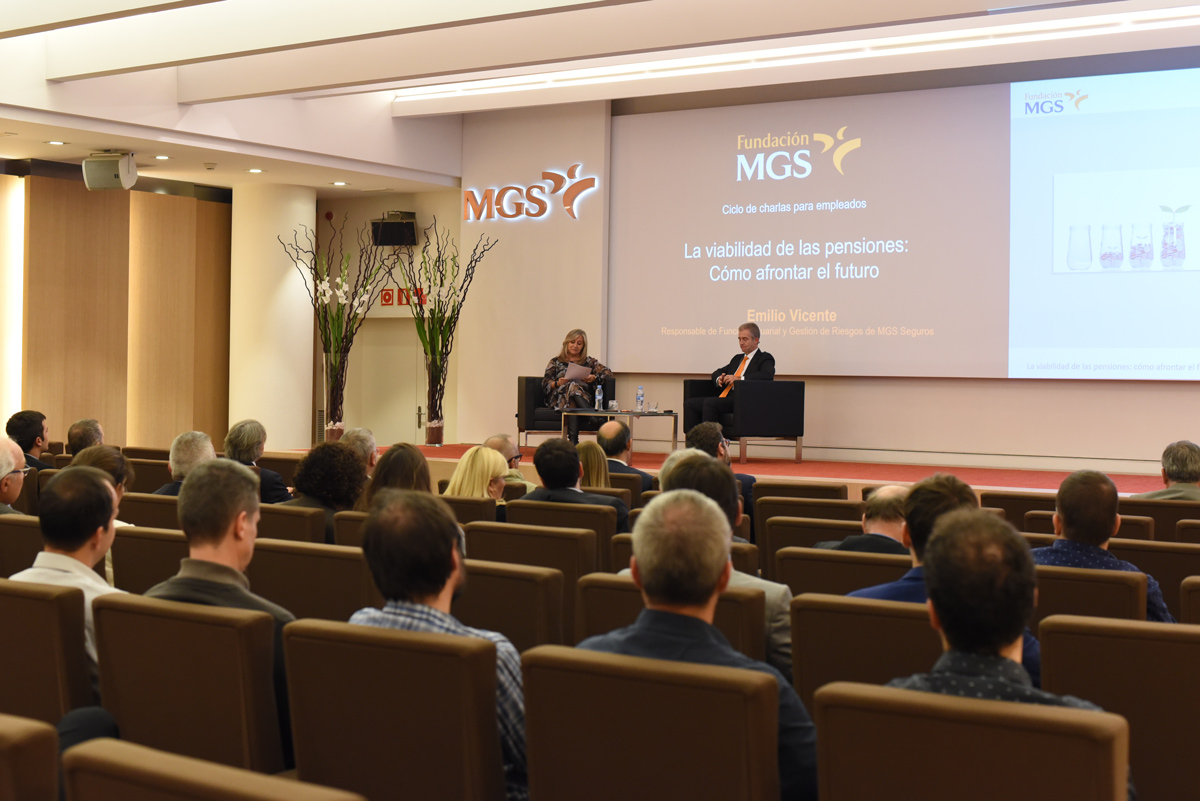 La Fundación MGS organizó el 8 de noviembre la jornada 'La viabilidad de las pensiones: cómo afrontar el futuro', destinada a empleados, mediadores y clientes de MGS Seguros. Más de 100 asistentes asistieron a la conferencia a cargo de Emilio Vicente, responsable de Función Actuarial y Gestión de Riesgos en MGS Seguros. En ella se repasaron conceptos, mitos, fortalezas y debilidades del sistema de pensiones español, se analizó la situación demográfica de nuestro país y se abordó la necesidad de realizar una adecuada planificación financiera de cara a la jubilación.