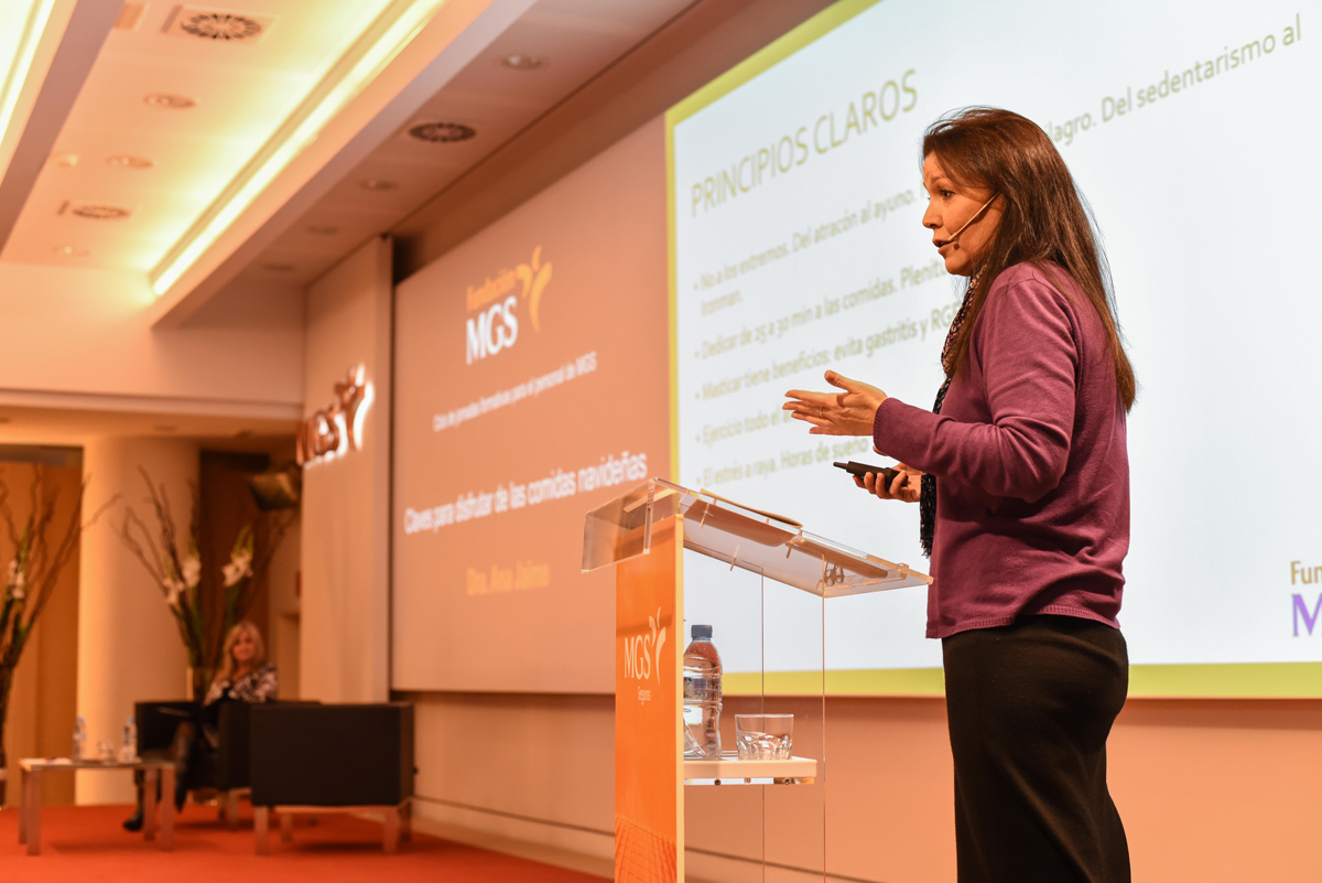 Fundación MGS ha organizado una jornada de formación sobre nutrición en la sede de la aseguradora. La impartió la doctora Ana Jaime, que explicó las claves para cuidar la salud, mantener el equilibrio nutricional y los buenos hábitos alimenticios durante la Navidad.