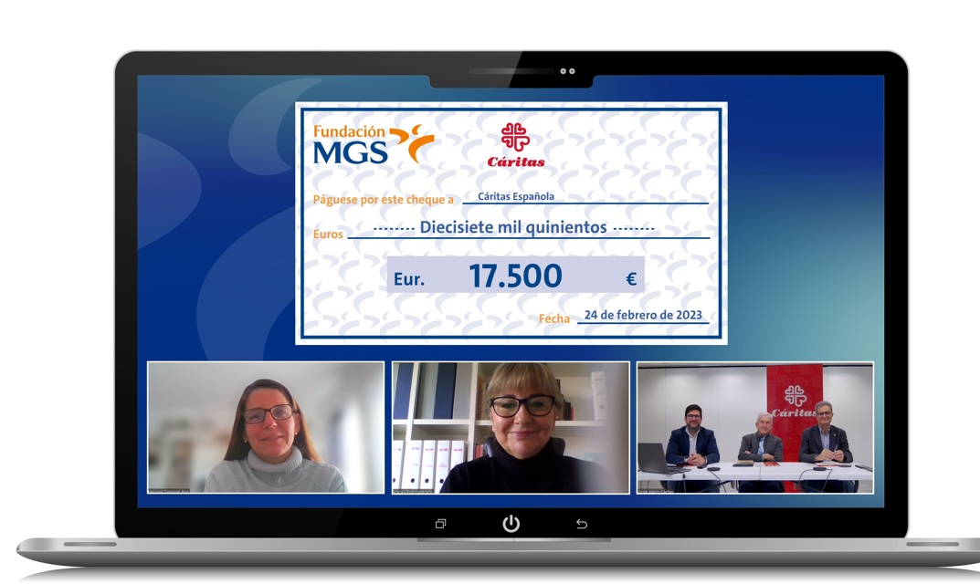La donación tuvo lugar a través de una reunión online presidida por Araceli Ruiz, vicepresidenta de la Fundación MGS, en la que estuvieron presentes, por parte de Cáritas Española, Manolo Bretón, presidente; Pedro Barquero, miembro del Gabinete de Presidencia y Jorge Alario, miembro del equipo de Relación con Donantes e Instituciones.