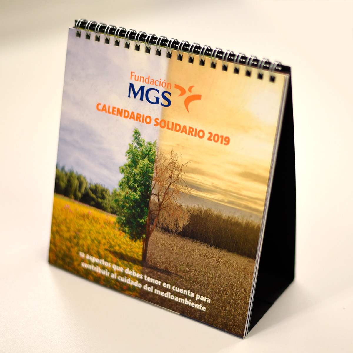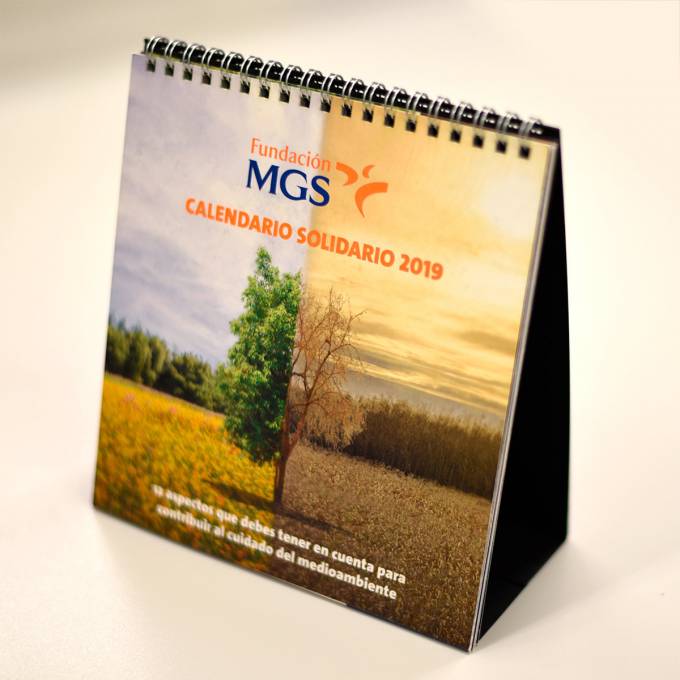La Fundación MGS ha editado una nueva edición de su tradicional Calendario Solidario, cuya recaudación se destinará en esta ocasión a WWF España y Médicos Sin Fronteras. Un año más el calendario está a disposición de todo el personal, mediadores y colaboradores de MGS Seguros; se ha elaborado en papel 100% reciclado e incluye 12 consejos con los que se puede ayudar a cuidar del medioambiente.