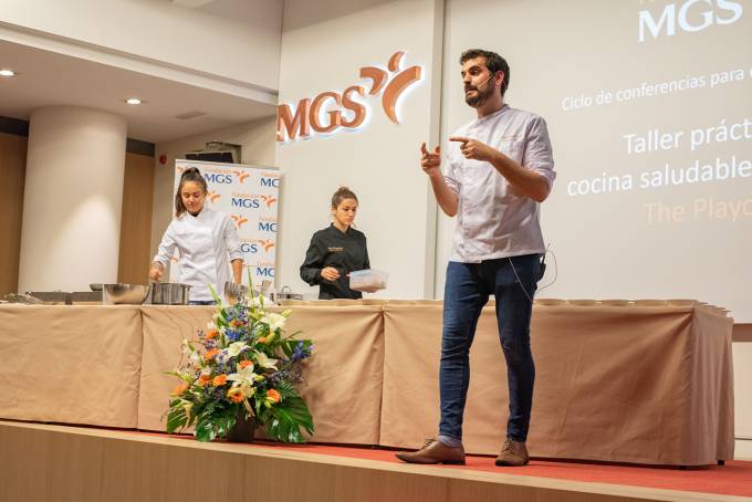 El evento, presidido por Araceli Ruiz, vicepresidenta de la Fundación MGS y directora de RR. HH. y Comunicación de MGS Seguros, contó como ponentes con Gerard Pintó, cofundador de The Playcook, profesor de cocina en la UB y en la Universitat Ramon Llull y nutricionista; Andrea Puigdellívol, dietista y nutricionista, experta en nutrición y genética en pediatría, especialista en Repostería Saludable y Ana Merino, chef y dietista finalista en "Cocinero del año 2015", con experiencia en restaurantes con estrella Michelín.