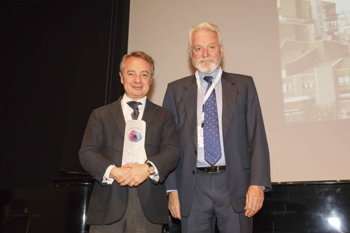 Lorenzo Cooklin, director general de la Fundación Mutua, ha recogido el premio de la mano del vicepresidente de la AEF, Amadeo Petitbò.