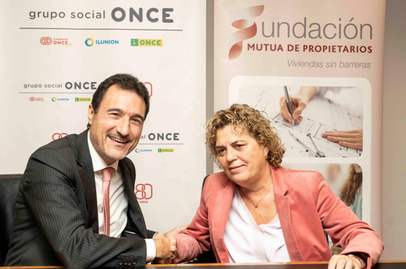 Fundación Mutua de Propietarios y Fundación ONCE han firmado un acuerdo por el que se comprometen a desarrollar acciones conjuntas que permitan la mejora de la accesibilidad de las comunidades de propietarios y la calidad de vida de sus vecinos. Entre ellas, destacan la elaboración de una 'Guía de accesibilidad para comunidades de vecinos', con el objetivo de ayudar a los administradores de fincas a abordar las necesidades de accesibilidad en las comunidades; la actualización de estudios realizados hasta ahora sobre la materia, como el de 'Accesibilidad en las viviendas y edificios españoles'; la reactivación del 'Observatorio de la accesibilidad de vivienda en España' en cinco años para determinar, entre otros aspectos, si la cantidad de ayudas públicas y privadas han sido suficientes para mejorar el actual 0,6% de accesibilidad universal en los edificios de viviendas; y la concesión de ayudas para la promoción de la accesibilidad universal en viviendas.
