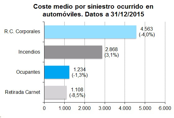 Las garantías de seguros de automóviles con costes más elevados en 2015 fueron las de RC Corporales, con un importe medio de 4.563 euros (un 4% anual menos), seguida de la garantía de Incendios, con un coste medio de 2.868 euros (un 3,1% más). Además de Incendios, la otra garantía que más subió fue la de Robo de Vehículos. La que más se redujo fue la de Retirada del Carnet, según datos de ICEA.