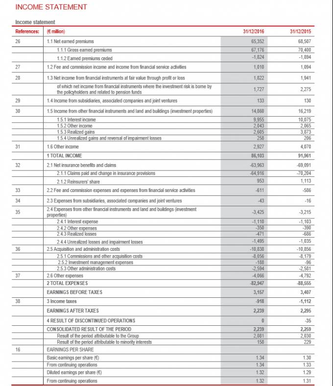 Generali ha cerrado 2016 con un resultado atribuible al grupo de 2.081 millones de euros, lo que supone un crecimiento del 2,5% respecto al año anterior. La aseguradora fundamenta estos resultados en la aceleración del ahorro de costes y en la mejora de los resultados de los mercados en los que opera. El volumen de primas brutas alcanzó los 70.513 millones de euros (-3,9%), creciendo en No Vida (+2,1%) y retrocediendo en Vida (-6,3%).