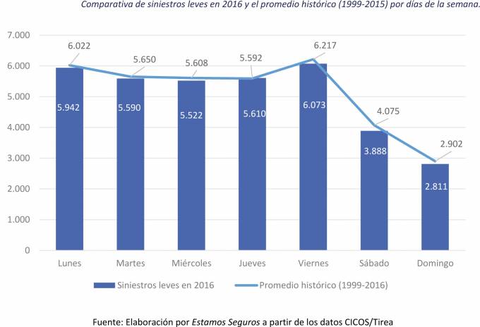 En 2016, se produjeron 1,85 millones de accidentes leves de tráfico en España. La siniestralidad creció un 2,78% en el ejercicio; hubo 64.300 golpes de chapa más en las calles. Los accidentes crecieron en todas las comunidades autónomas, salvo en Cantabria. Estas son algunas de las conclusiones que arrojan los datos a cierre de año reunidos por Tirea y divulgados por Estamos Seguros. Unespa comenta que “a pesar del incremento de la siniestralidad en prácticamente toda España, el ejercicio 2016 fue relativamente benigno si se compara con la media histórica. Todas las jornadas se registraron menos siniestros que el promedio de accidentes de chapa por día de la semana del período comprendido entre 1999 y 2016”.
