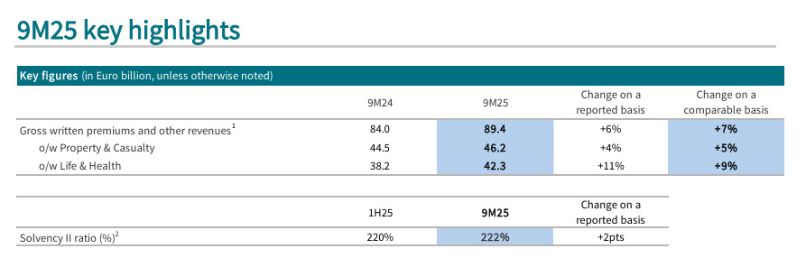 Grupo AXA ha anunciado que en los 9 primeros meses del año ha logrado un volumen de ingresos de 89.400 millones de euros, lo que indica un crecimiento del 7% respecto al año anterior. El avance en No Vida ha sido del 5% superando los 46.000 millones, mientras que Vida y Salud totaliza los 42.000 millones y registra un crecimiento del 9%. Según muestran los datos, el negocio en España crece un 8,8% tanto en Commercial Lines como en Personal Lines.