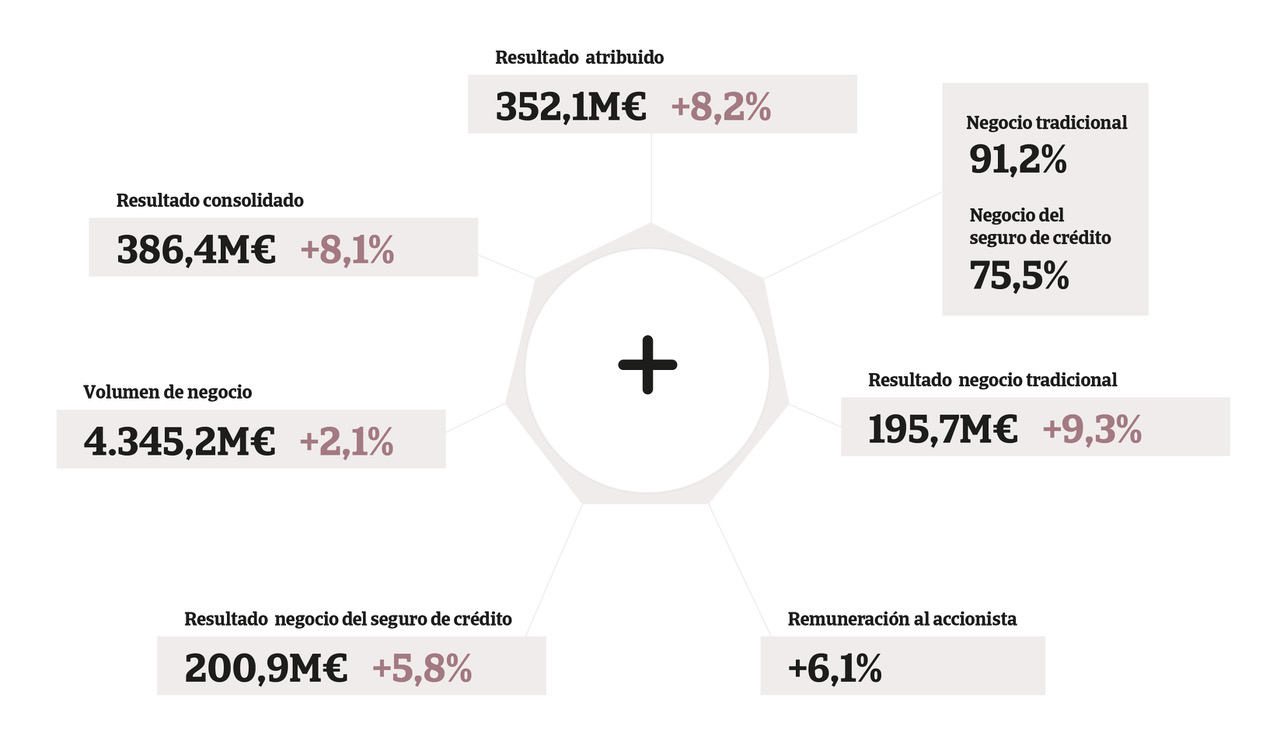 El seguro de Crédito supone el 41,5% de su facturación y el resultado recurrente del seguro de crédito (Atradius Crédito y Caución y Atradius Re) avanza un 5,8% hasta los 200,9 millones de euros. Además, el volumen de negocio de esta actividad aumenta hasta los 1.781 millones, un 3,6% más respecto al año anterior.