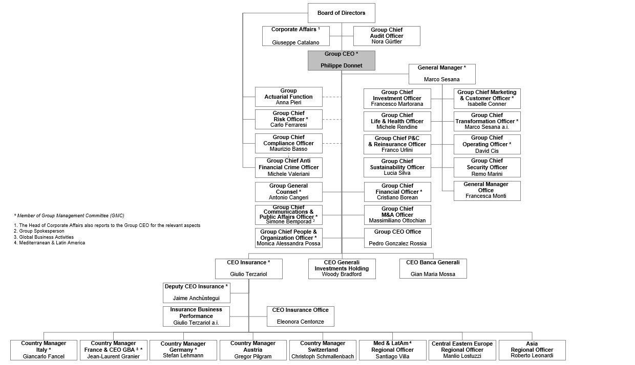 A partir del 1 de junio, Grupo Generali operará como un grupo financiero diversificado centrado en dos negocios principales: Seguros y Asset Management. La División de Seguros (Insurance Division) estará liderada por el CEO de Insurance, Giulio Terzariol. Este departamento será el encargado de impulsar el negocio asegurador en todas las áreas geográficas, mejorando así la coordinación, la alineación estratégica y facilitando una mayor proximidad a los mercados. Las unidades de negocio DACH e International se integrarán dentro de esta nueva División. Definitivamente, estará compuesta por 5 unidades de negocio y 3 regiones que reportarán directamente al CEO de Insurance. Las 5 unidades de negocio son Italia, Francia & Global Business Activities, Alemania, Austria y Suiza. Y las 3 regiones: Mediterranean & Latin America, Central Eastern Europe y Asia.