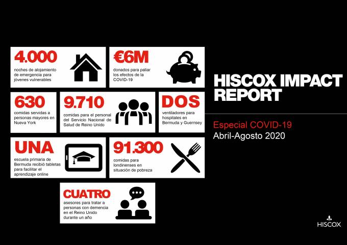 El Grupo Hiscox ha destinado 6 millones de euros a distintas iniciativas entre abril y agosto para paliar los efectos de la pandemia, según se detalla en el informe 'Impact Report: Covid 19'.