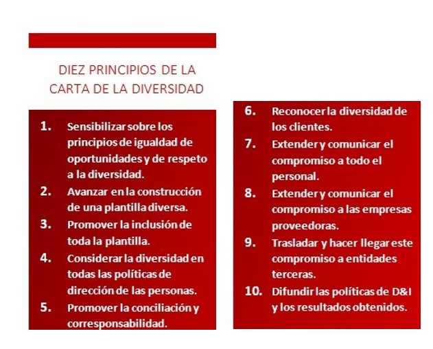 A través de esta Carta se comprometen a cumplir con los 10 principios con los que desean fomentar valores de igualdad, diversidad e inclusión en sus respectivos ámbitos de actuación.