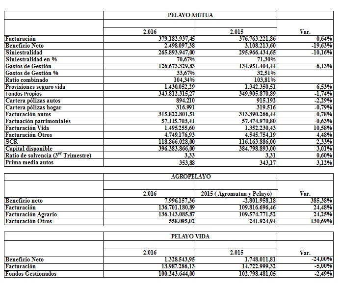 2016 ha sido el primer ejercicio completo de Agropelayo que se ha situado conseguido una cuota de mercado de un 19,5% y una facturación de 136,7 millones de euros, con un 24,5% de incremento sobre la suma del negocio de las dos entidades a 2015.