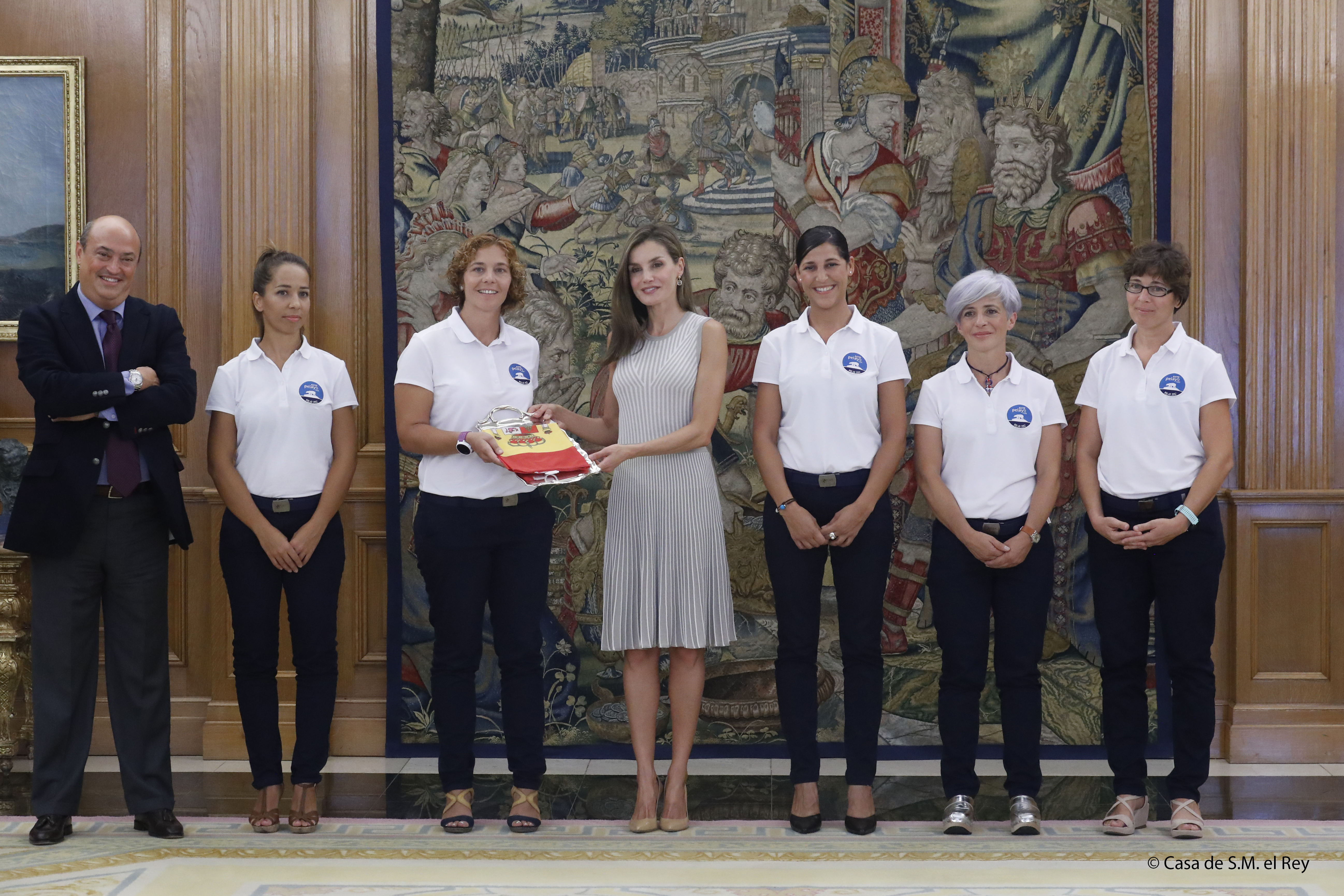 Los apoyos a las 5 aventureras que comenzaran su viaje el próximo día 11 de septiembre no paran de llegar. Ayer mismo, la Reina Letizia las recibió en el Palacio de la Zarzuela y les entregó una bandera de España para que la llevaran a la expedición.