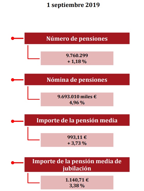 La pensión media de jubilación asciende actualmente a los 1.140,71 euros mensuales, un 3,38% más que en agosto de 2018. En cuanto a las nuevas altas, la pensión media de jubilación (agosto) es de 1.333,69 euros en el conjunto del sistema.