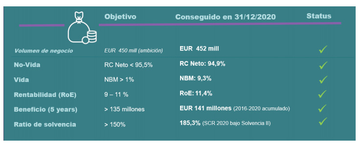 La aseguradora cerró 2020 con un volumen de primas de 452,2 millones de euros, lo que indica un crecimiento del 0,5% respecto a los datos de 2019. El avance se hace más notorio en el negocio de No Vida que mejoró un 1,7% hasta los 320,9 millones.